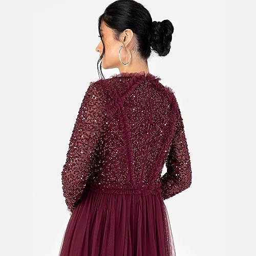 - EMBELLISHED DRESSER FÖR kvinnor – presenting förtjusande sequin finish långärmade klänningar. Finns i röda bär eller träkol och i 12 UK storlek- 6, 8, 10, 12, 14, 16, 18, 20, 22, 24, 26, 28. Välj en favorit en för dig själv och dina bridesmaider.