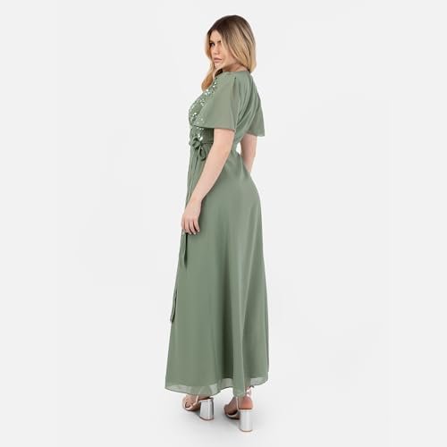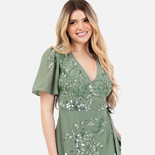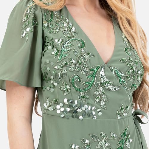 Maxi kvällsklänning: Kvinnors kvällsklänning har en gnistrande sekvin embellishment med ett elegant bladmotiv. Tillverkad av ett lyxigt chiffongtyg, omlottklänningen har en golvlängdkjol, medan den är dragbar gör den enkel att bära.