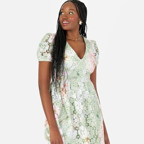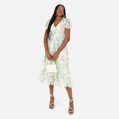 Spetsklänningar för kvinnor: Maya Deluxe presenterar fantastiska spetsklänningar med blommigt tryck. Finns i salvia grön och 7 UK storlekar: 6 UK (34 EU), 8 UK (36 EU), 10 UK (38 EU), 12 UK (40 EU), 14 UK (42 EU), 16 UK (44 EU), 18 UK (46 EU).