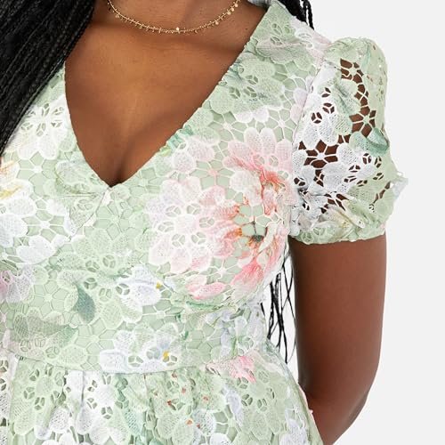 Spetsklänningar för kvinnor: Maya Deluxe presenterar fantastiska spetsklänningar med blommigt tryck. Finns i salvia grön och 7 UK storlekar: 6 UK (34 EU), 8 UK (36 EU), 10 UK (38 EU), 12 UK (40 EU), 14 UK (42 EU), 16 UK (44 EU), 18 UK (46 EU).