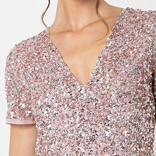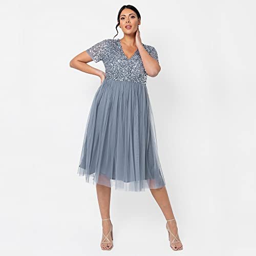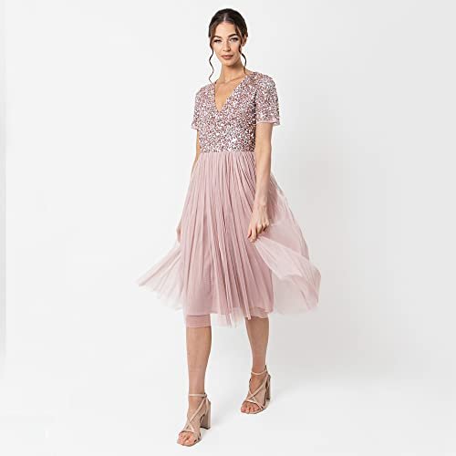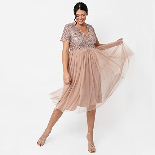Maya Deluxe Dam midiklänning med V-hals, dekorerad brudtärneklänning