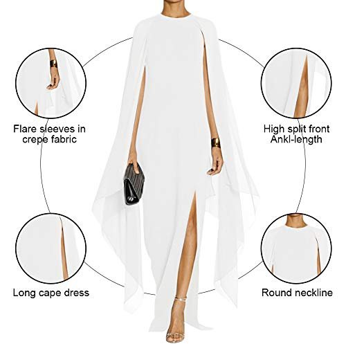 MAYFASEY Women's Elegant High Split Flared Sleeve Formal Evening Maxi Dresses with Cape White XXL mängd