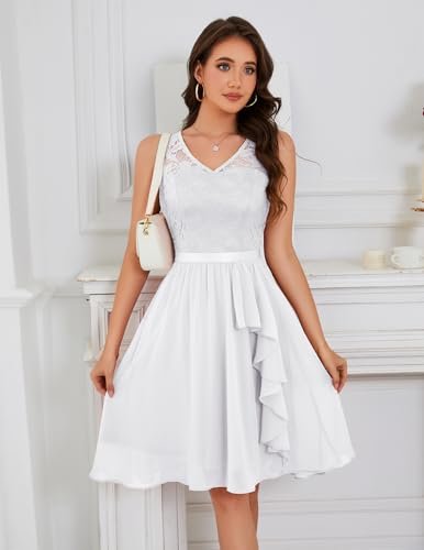 Design: Denna korta hemkomstklänning har en graciös V-ringad, hög midja silhuett och lekfull volangfåll som ger rörelse och charm. Dragkedjan på baksidan gör det enkelt att bära medan den ärmlösa designen håller den chic och mångsidig för alla formella fester