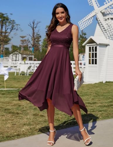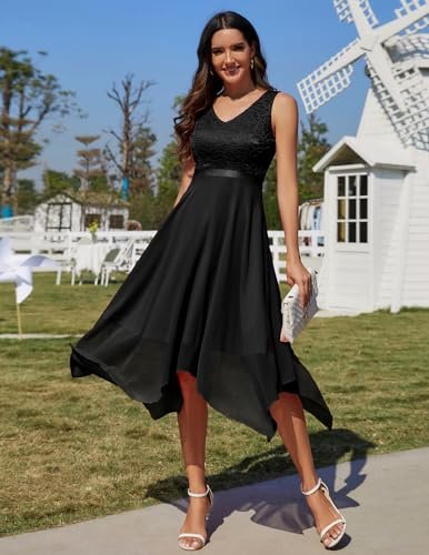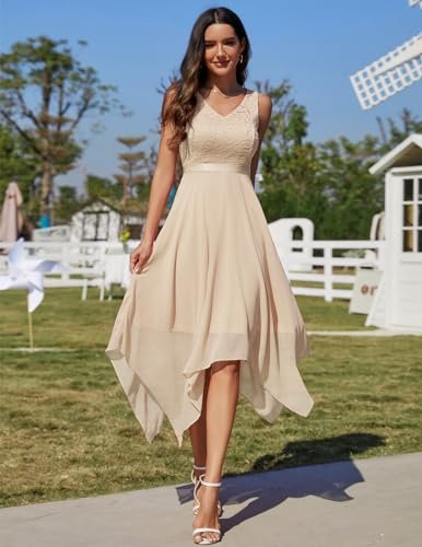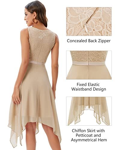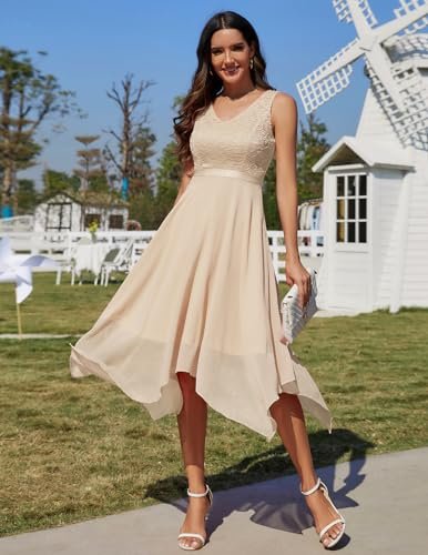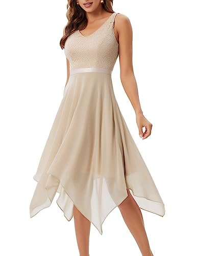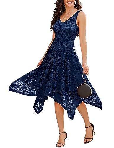 - Funktioner: Denna swing-bröllopsgästklänning är idealisk för vår- och sommarbröllop, utstrålar en romantisk och feminin look. Den näsduksfåll har en V-ringning, en ärmlös passform och en smickrande hög midja som passar alla kroppsformer.
