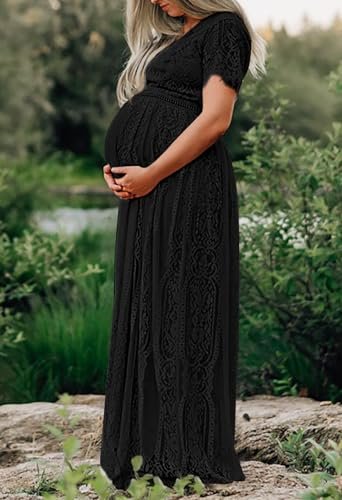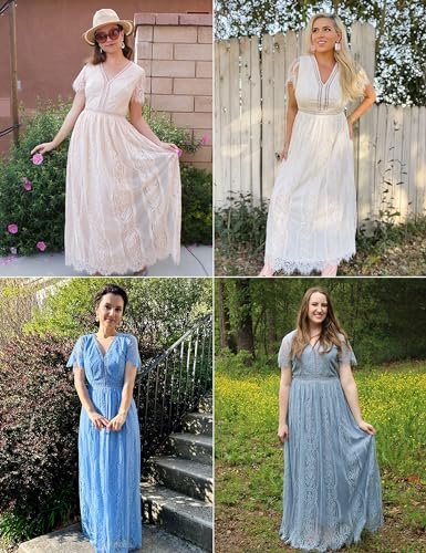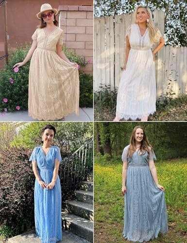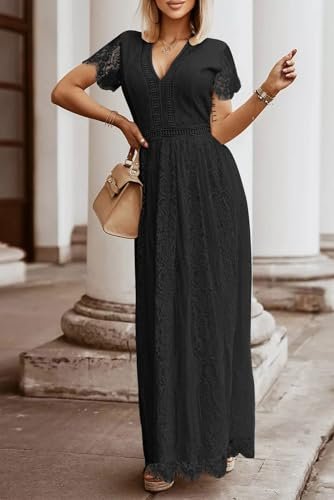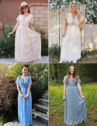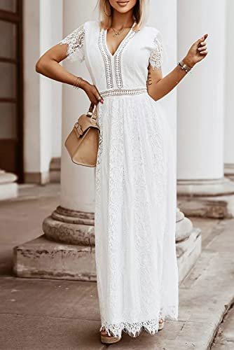- Unik design: Djup v-ringning, korta ärmar med ren spets, chic blommig spets, högt elastiskt midja och ryggband, full längd, med passform och flödande, med fullt foder och dold dragkedja på baksidan.