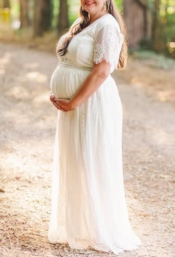 - Unik design: Djup v-ringning, korta ärmar med ren spets, chic blommig spets, högt elastiskt midja och ryggband, full längd, med passform och flödande, med fullt foder och dold dragkedja på baksidan.