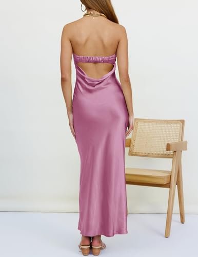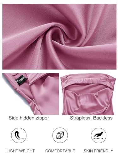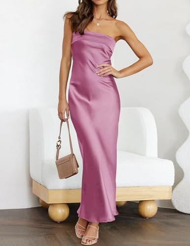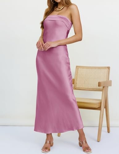 MEROKEETY Women 2025 Summer Strapless Satin Tube Bodycon Backless Wedding Guest Maxi Dress, Plum, S