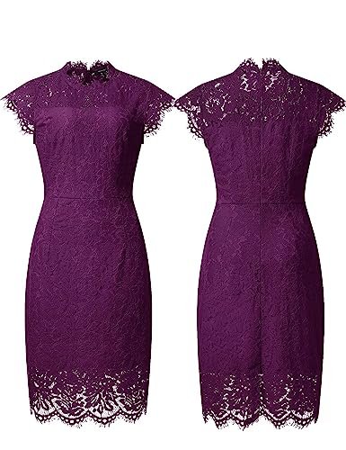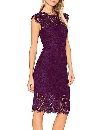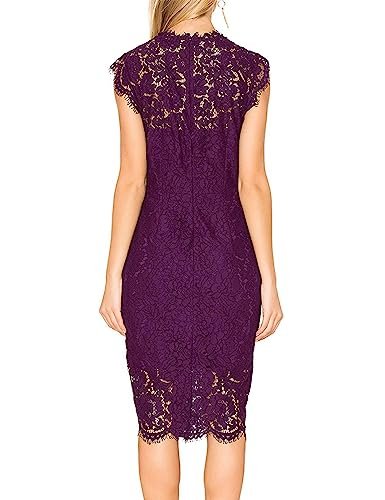 MEROKEETY Women's 2025 Lace Floral Midi Dresses Classic Elegant Party Dinner Photoshoot Dress, Plum, X-Large