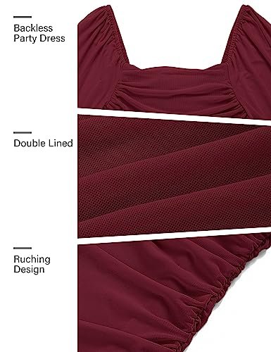 MEROKEETY Women's Long Sleeve Wedding Guest Formal Dress Fall Winter Ruched Bodycon Mesh Cocktail Party Midi Dresses, WineRed, L