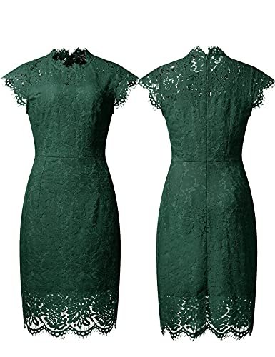 MEROKEETY Women's Sleeveless Lace Floral Elegant Cocktail Dress Crew Neck Knee Length for Party, Dark Green, Medium