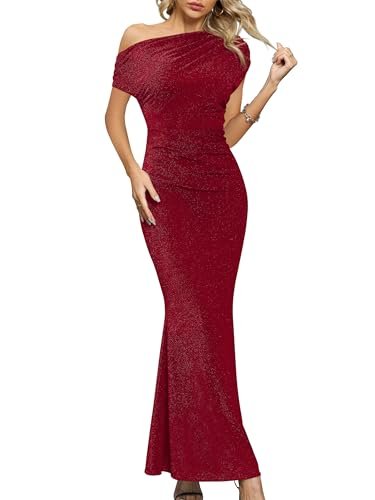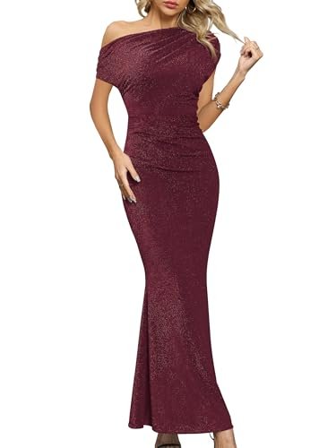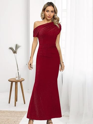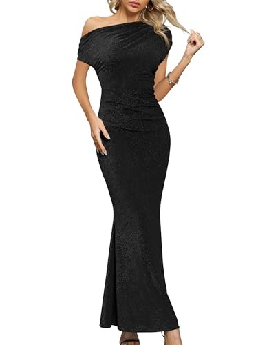 - 👗【Egenskaper och design】– One-Shoulder-kortärmad klänning, rynkad festbodycon-klänning, sjöjungfrukväll-maxiklänning, långa cocktailklänningar, trendiga enfärgade färger. Designen med korta ärmar ger skydd för dina armar, men håller dig sval när det är varmt utomhus.