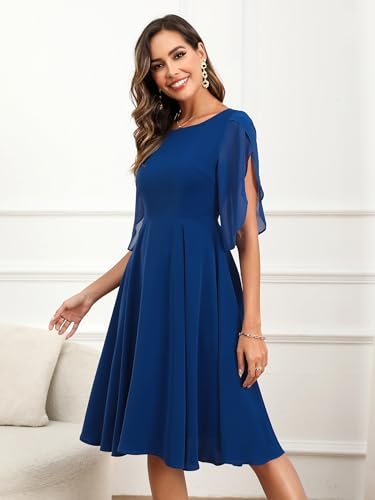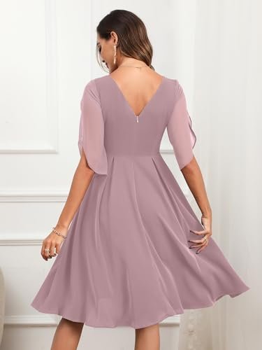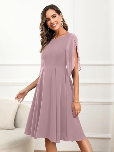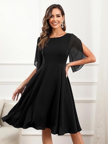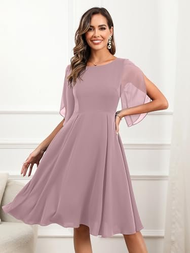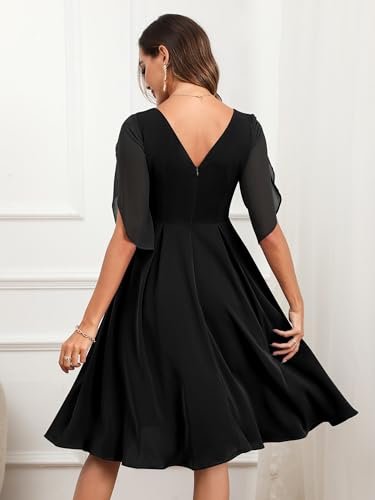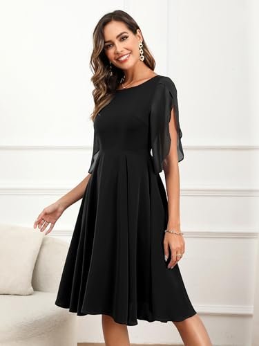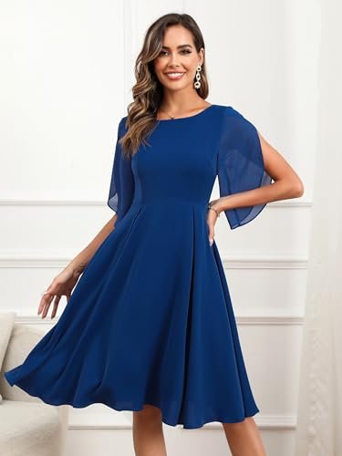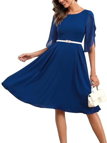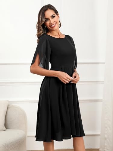 - 💕【Egenskaper och design】– halvkort ärm, A-linje swing festklänning, knälång cocktailklänning, figurnära och utsvängd chiffongklänning, U-hals, osynlig dragkedja. Designen med halvärm ger klänningen en extra touch av elegans samtidigt som den är mångsidig och lätt att bära. Den enfärgade färgen gör det enkelt att kombinera med dina kläder.