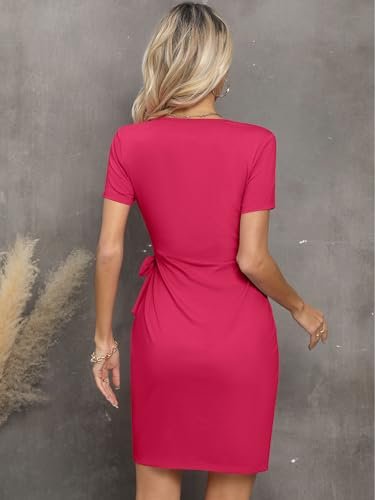 - 👑【Modedekorationer】– Klassisk rund hals, omlottklänning med korta ärmar, volang mini fritidsklänning, T-shirt för knytning, figurbetonade sommarklänningar, tulpanfåll, trendiga fulltonsfärger. Den har en smickrande slipsdesign på framsidan som betonar dina kurvor på rätt ställen.