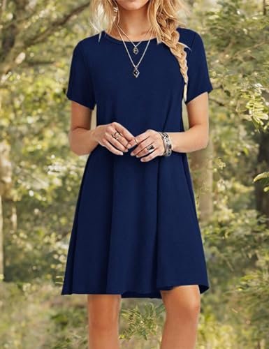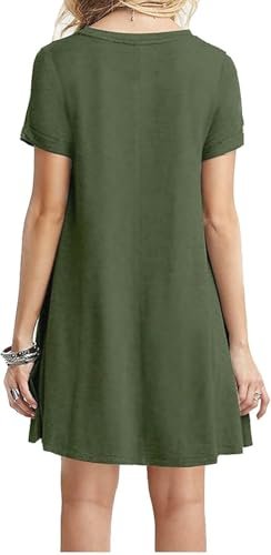 MOLERANI Sommarklänningar för dam ledig T-shirt kortärmad strandklänning dam swing lös klänning, Armégrön, XXL