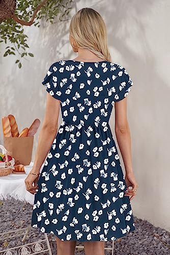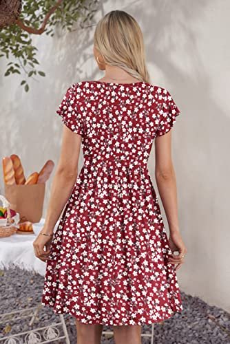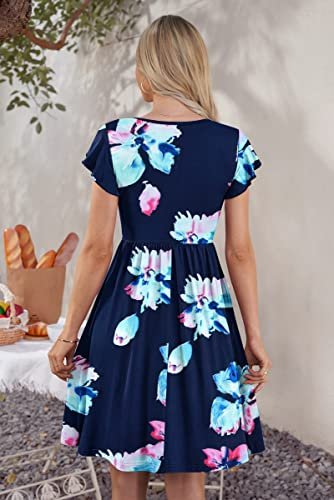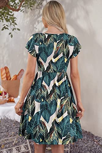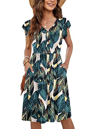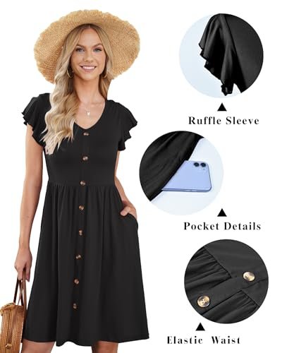 - Design: Midiklänningen för damer sommar består av volangärmar, v-hals, knappdekoration, extrem knälängd samt funktionella fickor, elastisk linning skapar naturliga veck för en smalare look