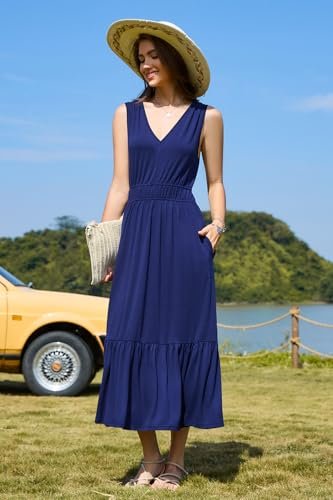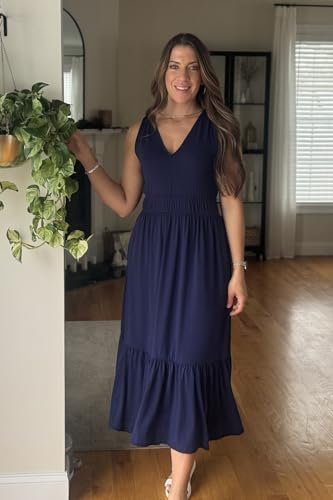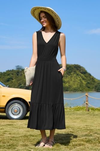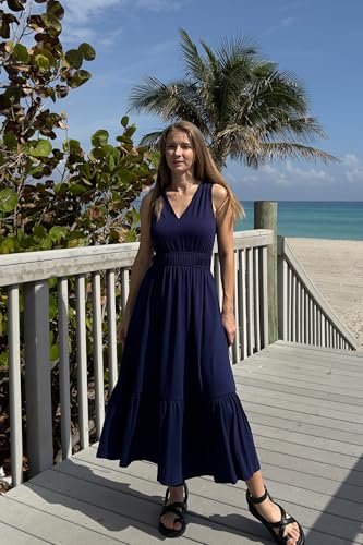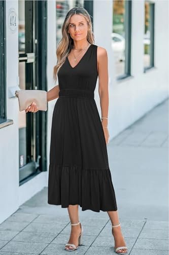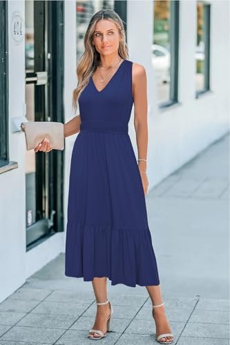 - V-ringad sommarklänning: Du kan bära de långa klänningarna för kvinnor med sandaler för en avslappnad känsla eller kasta på klackarna för dejtkvällen. Dessa midi-klänningar för kvinnor ger en feminin touch och ger ett lekfullt element till din semester och strandkläder