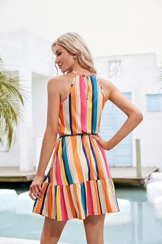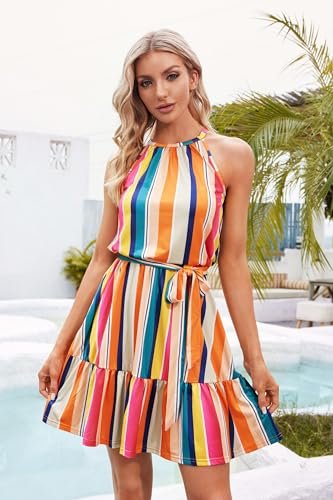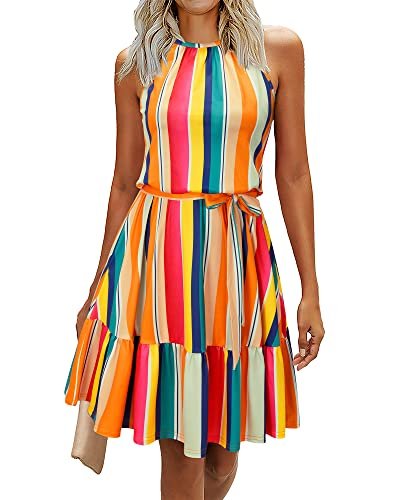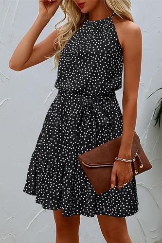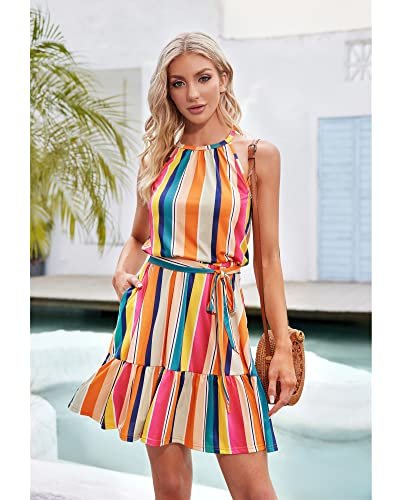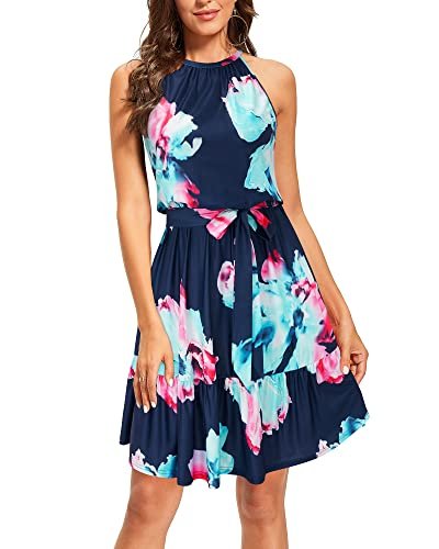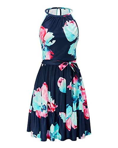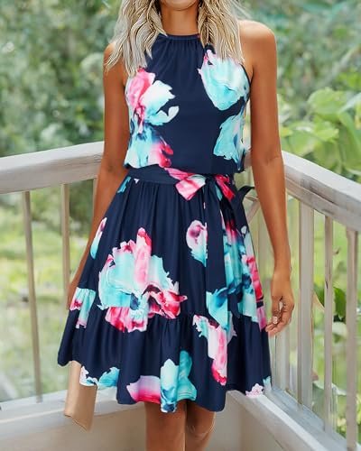 - Stil: Ärmlösa/halterneck-klänningar för kvinnor/ledig sommarklänning/strandklänning/knälång/blommig sommarklänning för kvinnor/knytband/klänningar med flera lager och skärp, även ett bra val som present.