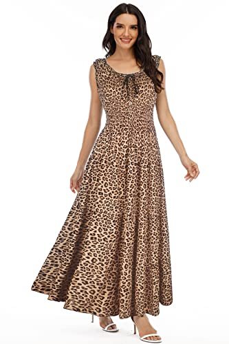 OSTOO Women's 2025 Summer Boho Floral Print Tiered Casual Flowy Long Maxi Dress(Khaki,XL)