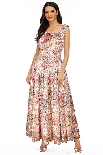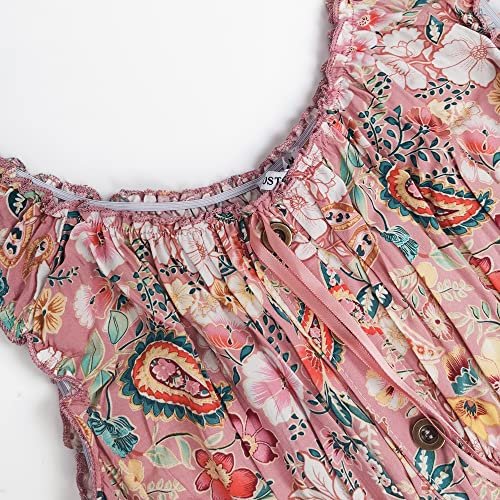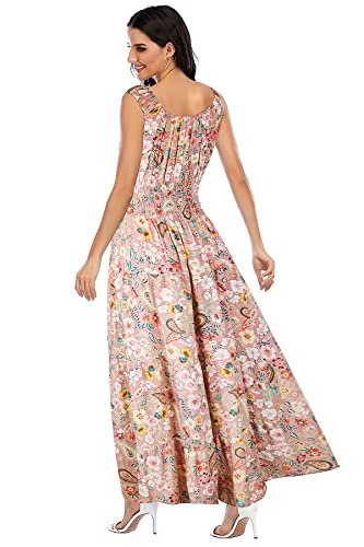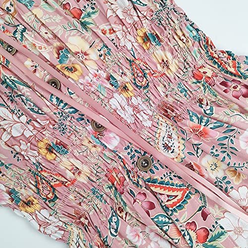 OSTOO Women's 2025 Summer Boho Floral Print Tiered Casual Flowy Long Maxi Dress(Pink,XXL)