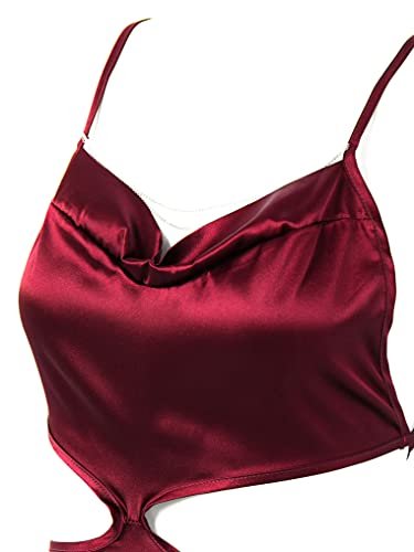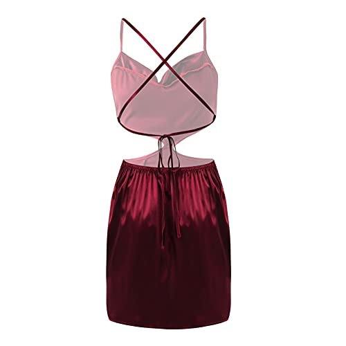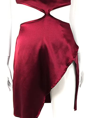 Oyolan Dam miniklänning sexig kort bodycon ärmlös klänning rygglös satin partyklänning klubbkläder S-XL, Bordeaux, XL