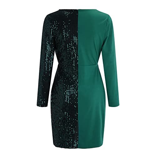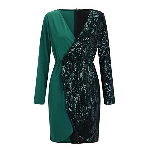 Paljettklänning, kort, långärmad, glitterklänning, damer, v-ringad, asymmetrisk, festklänning,...