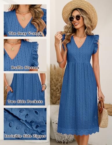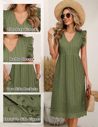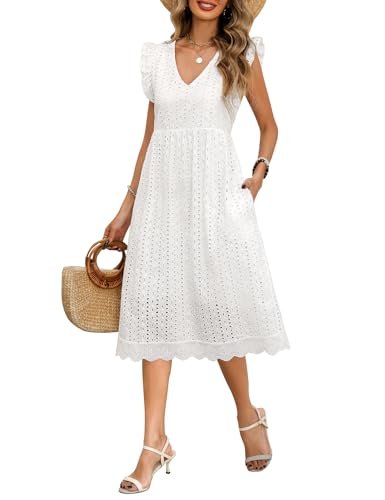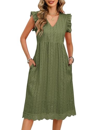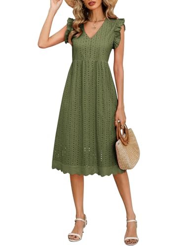 PASUDA Sommarklänningar för kvinnor vardaglig V-ringad volang ärm...