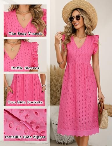 - Lätt att matcha: Mellanlängden klänningen kan enkelt paras ihop med solglasögon, örhängen, halsband, klackar, sandaler, solhattar och handväskor för ett elegant och elegant utseende. Våra långa klänningar för kvinnor finns i 5 färger för att matcha, svart, rosa, vit, blå och grön.