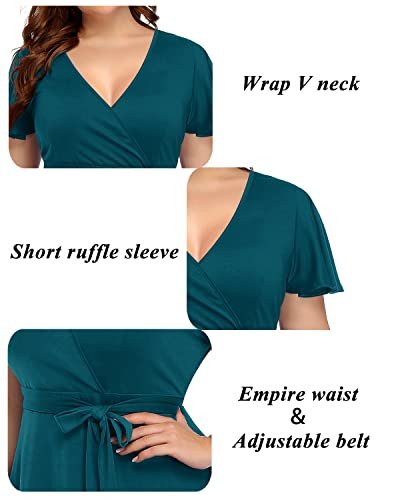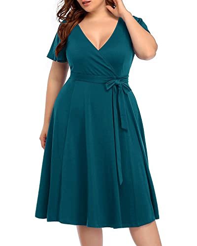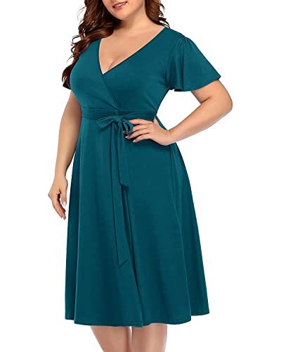 Peacock Dress Plus Size Wrap Midi A-Line Short Sleeve Casual Summer V-Neck Semi Formal Wedding Guest Sun Dress Women