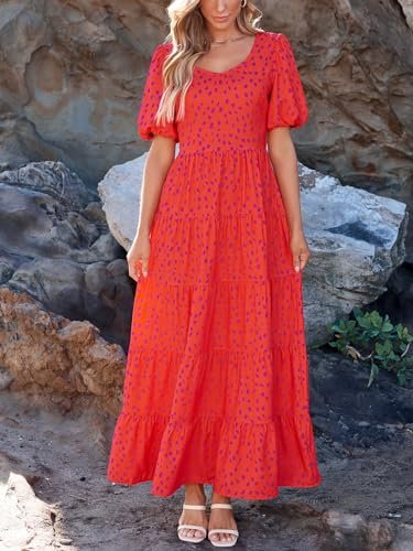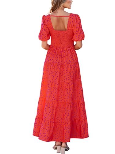 PRETTYGARDEN Floral Long Sun Dresses for Women 2025 Vacation Trendy High Waisted Flowy Summer Maxi Wedding Guest Dress (Red Leopard,XX-Large)