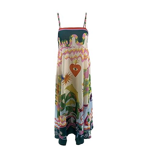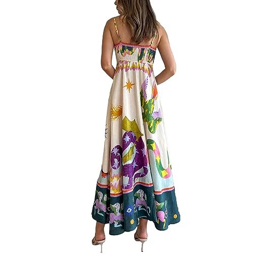 Snygg design: Snygga tryck, justerbara spagettiremmar och ärmlös, hög midja, flödande fåll, sommar bohemiska klänningar för kvinnor, strandklänningar för kvinnor, ankellängd och A-linjedesign gör benen längre och ser smalare ut.