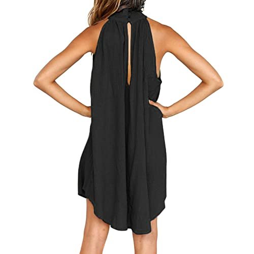 ☻【Stil】Casual strandkläder miniswingklänningar. När vinden blåser mjukt fladdrar kjolen för att få dig att se ut som en fladdrande fjäril. Kortärmad midiklänning för kvinnor, perfekt för vår och sommar. Klänningens enkla och eleganta knälånga design gör den lämplig för alla vardagliga och formella tillfällen. Lös klänningsdesign, ger sommaren rikligt fritt andetag, avslappnad, ser väldigt bra ut, mycket distinkt stil, gör dig vacker, moderiktig