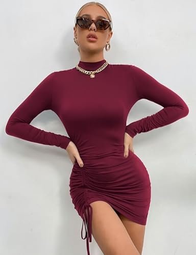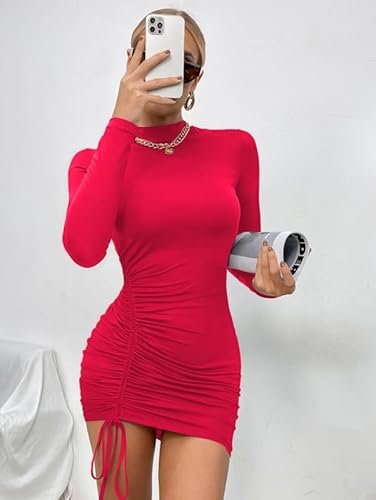 - Unik design: Denna sexiga och eleganta klänning är designad för att smickra alla kroppstyper. Siluetten med rynkade detaljer ger en perfekt passform. Designen med dragsko på sidan förvandlar den till en rynkad bodycon klänning som täcker magen och smickrar benen och skapar en förförisk silhuett.
