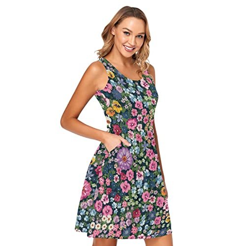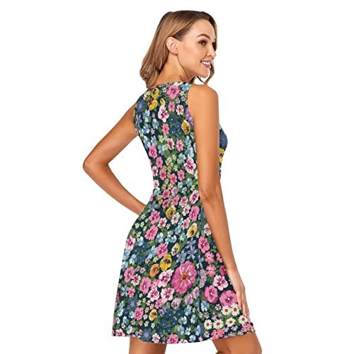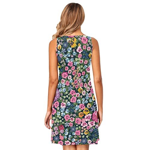 RPLIFE Blommande sommar växt ärmlös sommarklänning kort fritidsklänning...