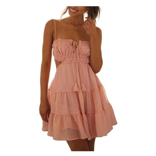 Rufsig miniklänning för kvinnor sommar Spaghetti Rem Öppen...