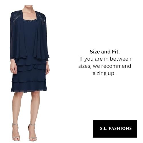 S.L. Fashions Women's Mother of The Bride Dress with Embellished Neckline & Shoulder, Wedding Guest (Petite and Regular Sizes), Mid Teal, 14