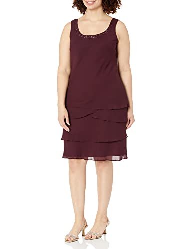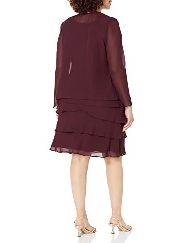 S.L. Fashions Women's Mother of The Bride Tiered Jacket Dress with Shoulder Embellishment (Petite and Regular Sizes), Fig, 10