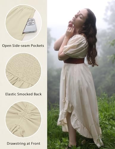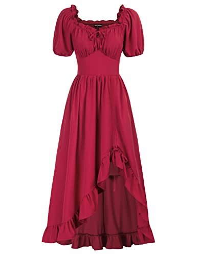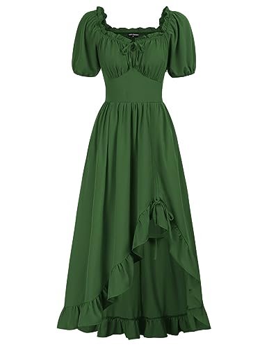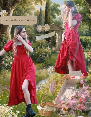 - 🌼【Stilar】 Viktoriansk klänning, renässans rättvis outfit, bondekostym, Cottagecore klänning, imperium midjeklänning, hög låg klänning, älvklänning, volang klänning, blommig klänning, sommarklänning