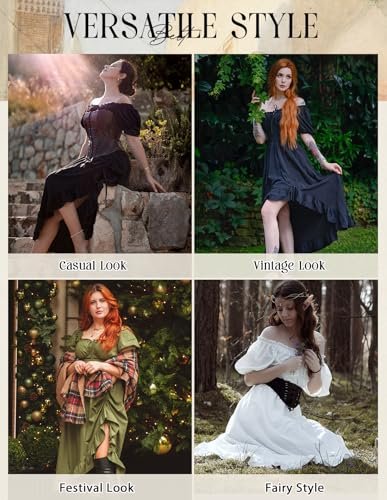 - 🌼【Design】Korsettklänningen är ett mångsidigt plagg som enkelt växlar mellan en kortärmad, elegant viktoriansk stil och en käkfallande, sexig off-the-shoulder-look. Dess förmåga att förvandla kommer att göra alla i vördnad för din modeförmåga.
