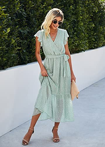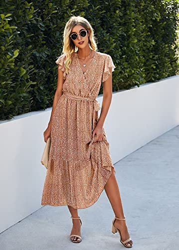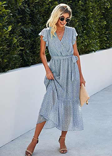 - Tillfällen: Dessa långa sommarklänningar med volanger är perfekta för dagligt bruk, arbete, dejter, cocktail, fest, strand, semester, bröllop och mer. Vacker och lätt lång strandklänning med tryck.