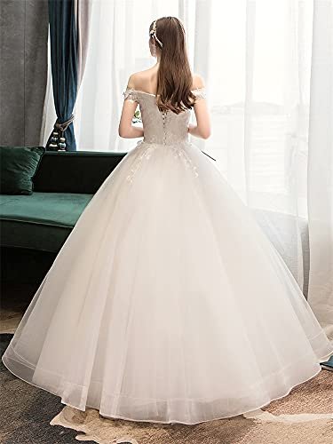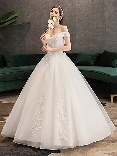 Shoudian Kvinnors brud elegant lyxig spets axelbandslös bröllopsklänning...