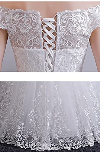 • Kvinnor elegant bröllop off-shoulder kapell bröllopsklänning för brud A-linje broderi blommig spets brudklänningar snörning utskuren rygg brudtärna klänning formella aftonklänningar sexig chiffong spetsklänning formell bröllop boll kväll fest maxi miniklänningar
