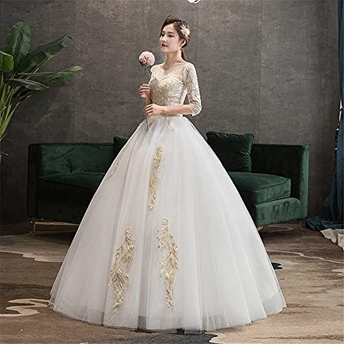 - Kvinnors brud elegant vintage flare ärm spets broderi balklänning bröllopsklänningar långärmad kväll festklänning dam brud elegant spets broderi båt hals bröllopsklänningar brud sexig kväll axelbandslösa klänningar kväll festklänning