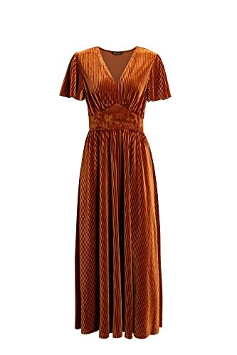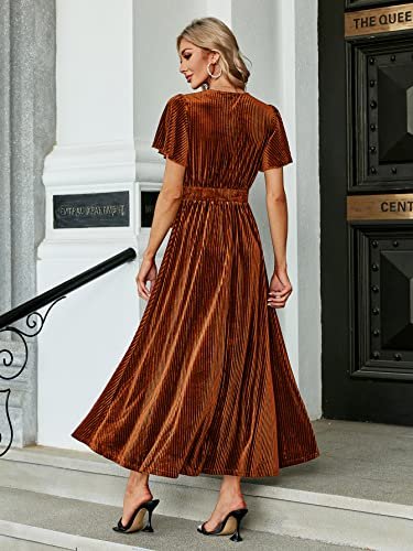 Simplee Women’s Short Sleeve Velvet Maxi Dress V Neck Formal Dress(S Earthy Orange)