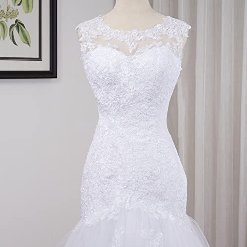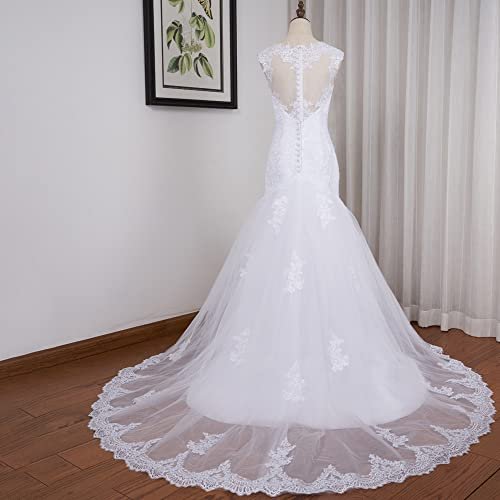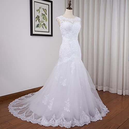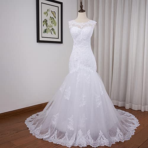 Sjögjungfru bröllopsklänningar långt tåg O-hals bröllopsklänning spets applikation...