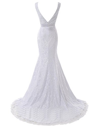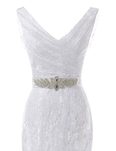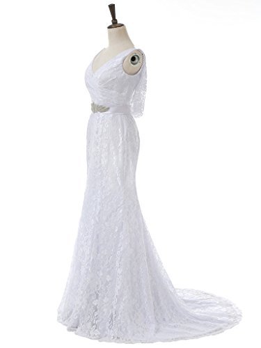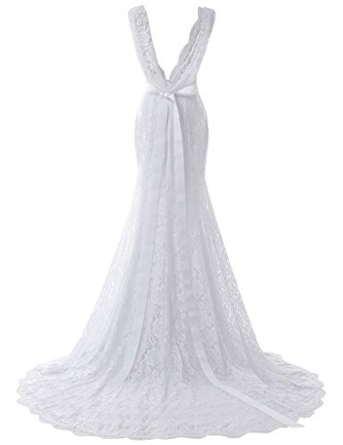 Slovedress Pärlband V-ringad sjöjungfru bröllopsklänning spets kvällsklänning lång...