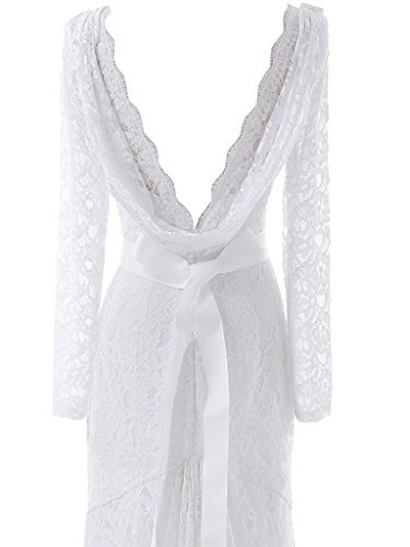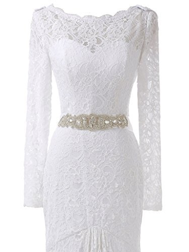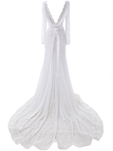 Solovedress dam långa ärmar spets bröllopsklänning sjöjungfru brud...
