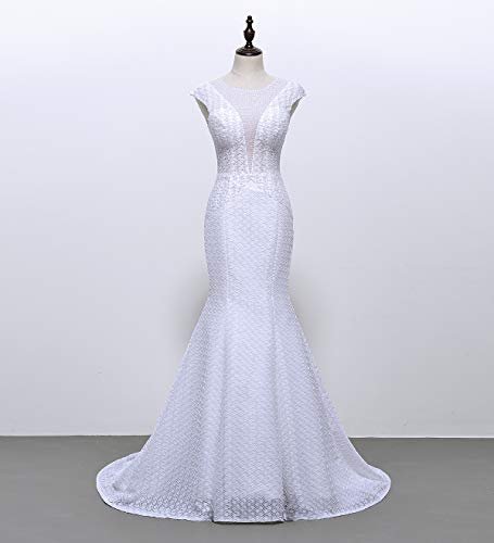 Solovedress Kvinnors lyx sjöjungfru spets bröllopsklänningar pärlor brudklänningar...