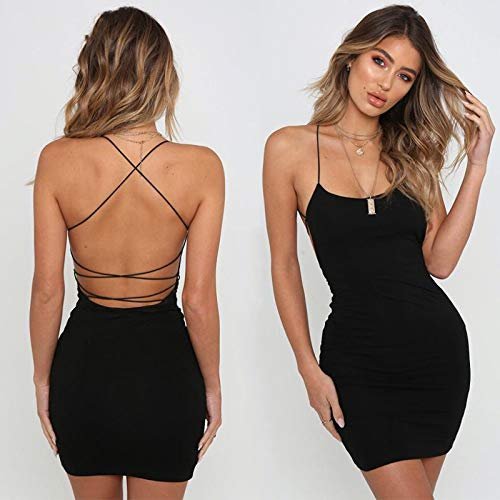 - 1.Design: Denna sexiga klänning har en rund halsringning med lågt snitt, tunna remmar med korsade detaljer. Spaghettihängslen och halterhalsdesign gör dig smickrande och attraktiv.