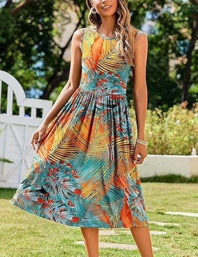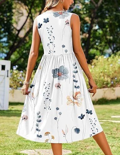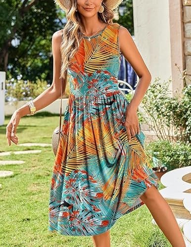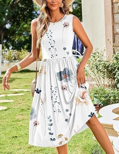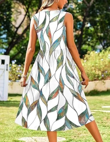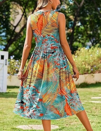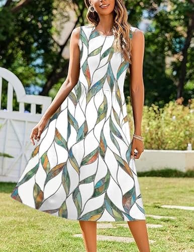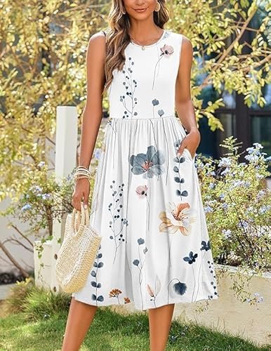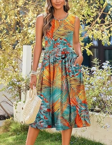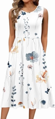 - Funktioner: Damsommarklänning, elegant, knälång, ärmlös sommarklänning, sommarklänning för kvinnor, rund hals, elegant A-linje, med två fickor, ärmlös, solklänning.