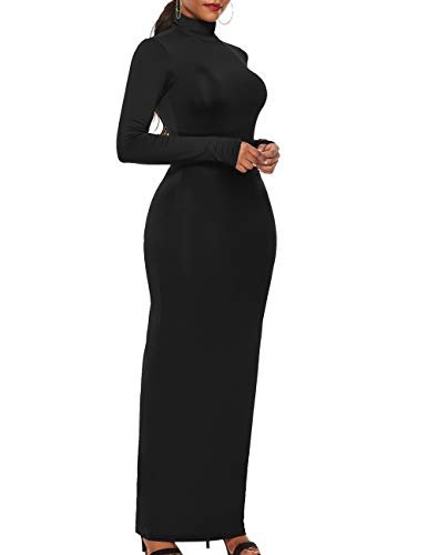 SOMTHRON Dam bodycon stretch maxiklänning med polotröja enfärgad...